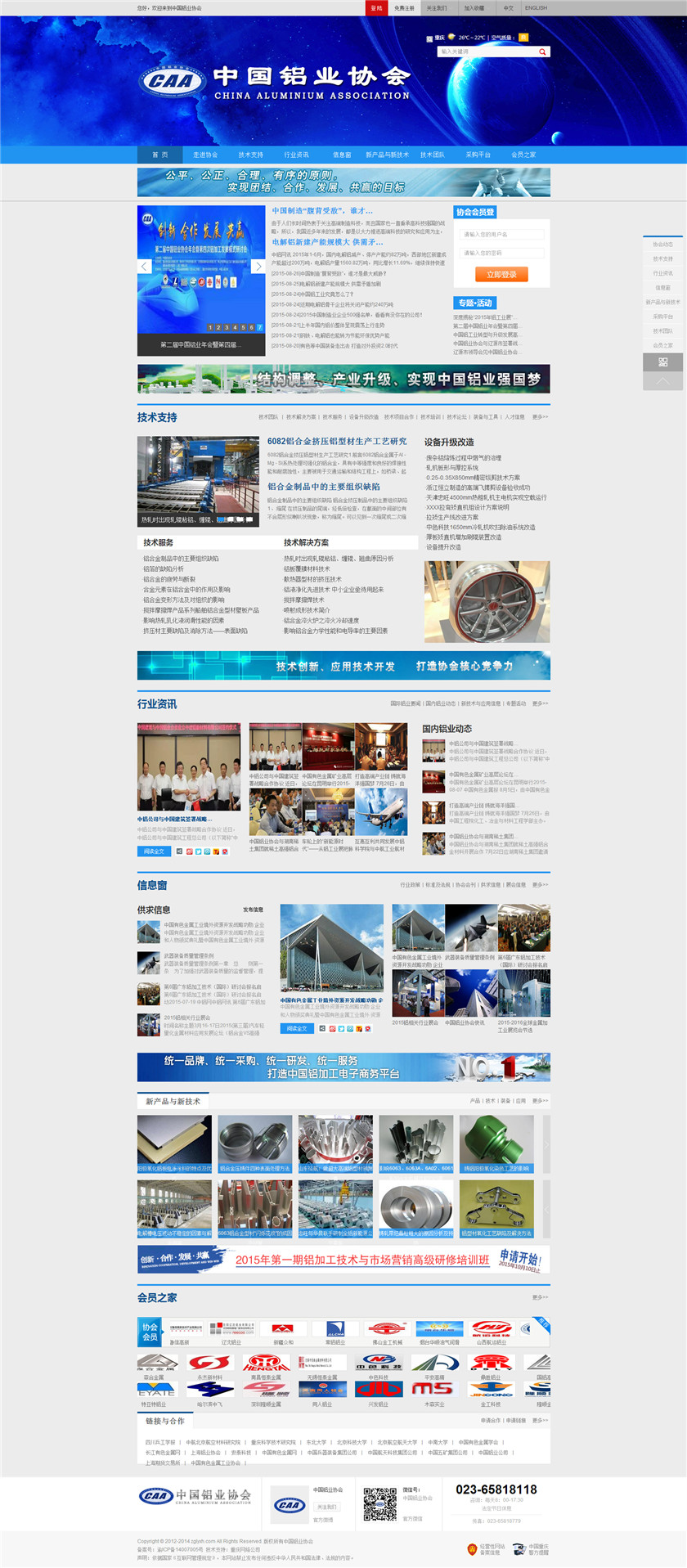 Project Description 中国铝业协会是由中国国内主要从事铝合金铸造、板、带、箔、管、棒、型材、锻件等企业组成的行业协会组织,协会由国内具有一定规模和影响力的企业发起,已有三百多家会员企业,目前还有很多企业踊跃希望加入,协会现有会员企业年销售额1000多亿元人民币,协会会员企业分布在国内华东、华南、西南、环渤海、东北、胶东半岛等中国经济活跃地区;产品涵盖航空航天、兵器装... Official website address 来宾http://www.caa2014.com I want to share